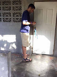 My morning began with a bit of a scare. Joe's insulin kicked in a bit too quickly before having food in his system. Antonio ran to get me in our room, since he was not doing well. I quickly dressed & ran to the dining hall, but he was pretty much recovered by then. Thankfully, juice was readily available. I was so thankful that this episode happened during breakfast and not at the construction site. From now on, a Nalgene juice bottle would be available for him at the site. While Joe is typically fantastic with managing his insulin, intense heat and perspiration can be an unwelcome mix to a diabetic's system, losing too many calories. At least now the guys knew to look out for him. I am glad that I had mentioned it to Tim prior to our trip, during the planning stages. So, another gray or two added to my crown!